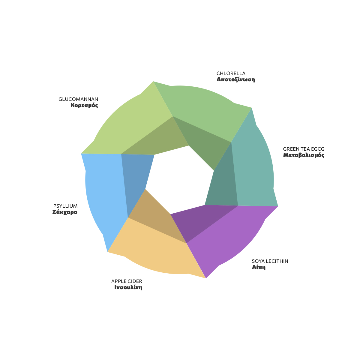Ο μηχανισμός του βασίζεται στη δημιουργία κορεσμού πριν από το γεύμα, έτσι ώστε να καταναλώνετε μικρότερη ποσότητα χωρίς να αισθάνεστε στέρηση. Παράλληλα, οι διαλυτές ίνες και τα εκχυλίσματα ρυθμίζουν την απορρόφηση υδατανθράκων και λιπών, μειώνοντας τις απότομες αυξομειώσεις ενέργειας και τη συσσώρευση λίπους.